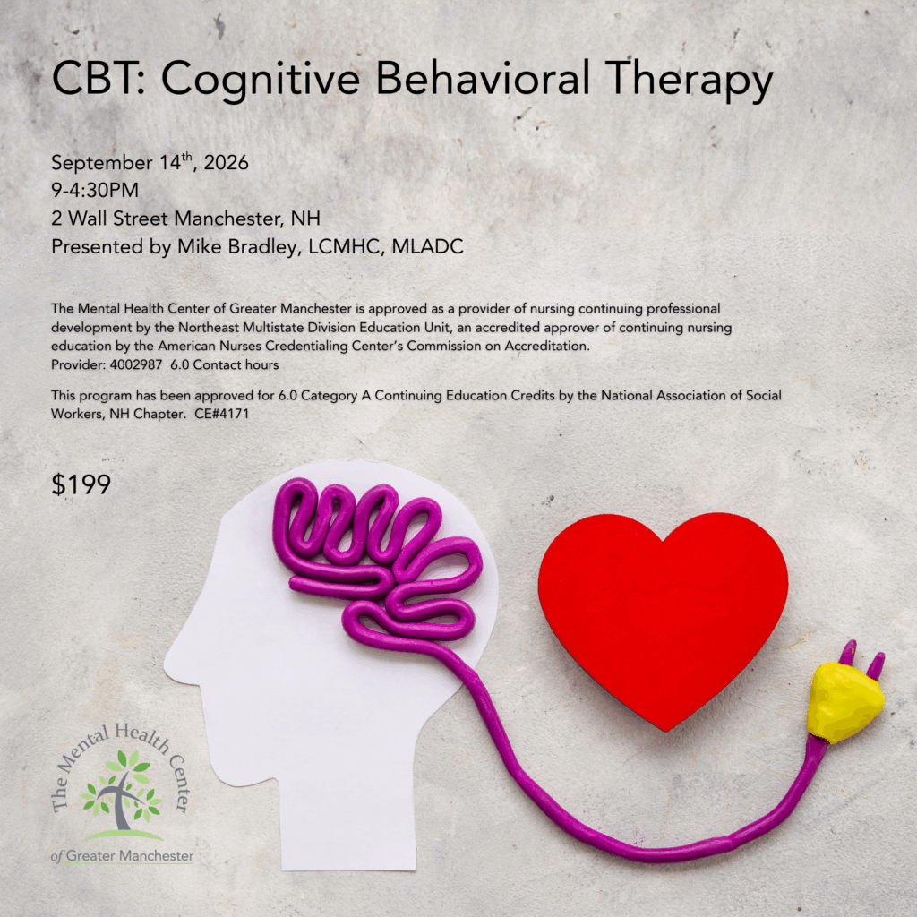 Learn about the evolution of CBT, strategies commonly used in CBT practice, adaptations of CBT for specific populations, and emerging CBT practices.  This course is approved for 6.0 Category A Continuing Education Credits by the National Association of Social Workers, NH Chapter.  CE# 4171.  This course provides 6 contact hours for nurses through the ANCC.