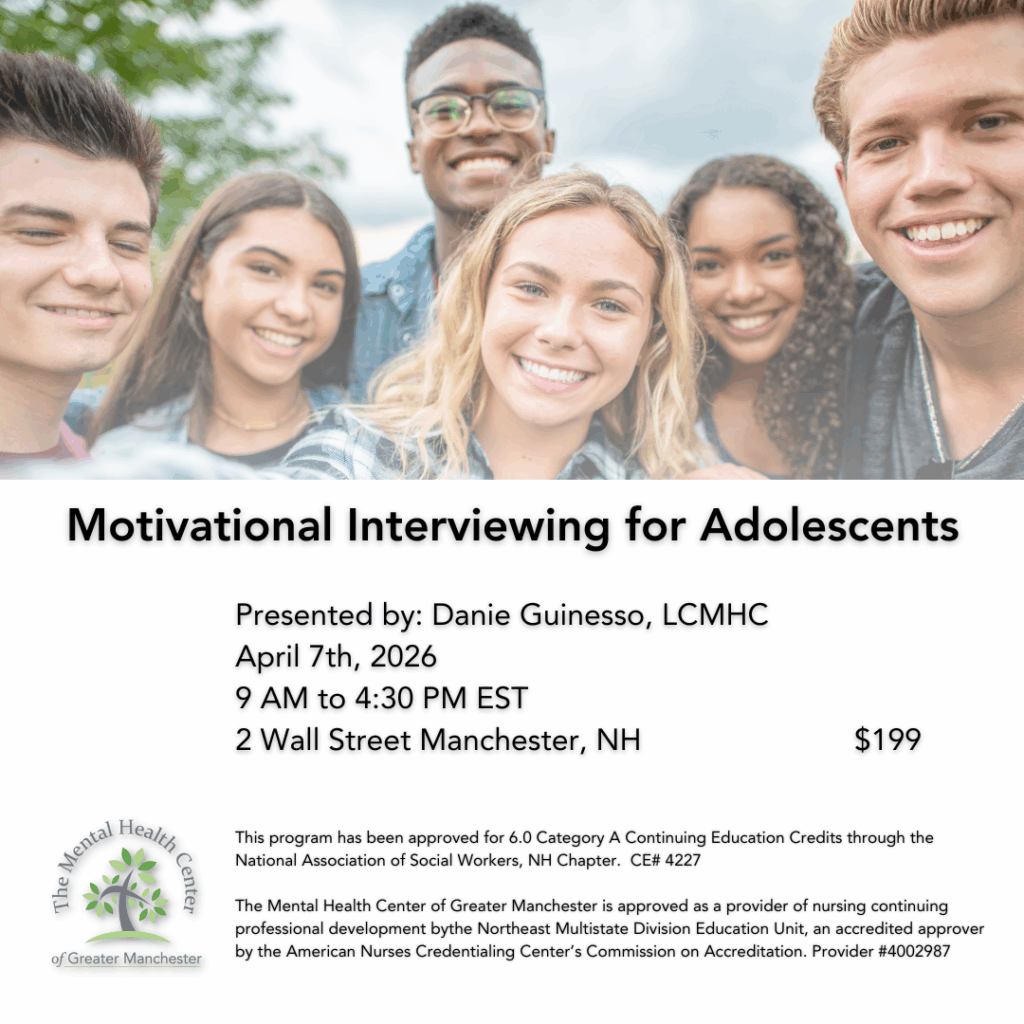 Motivational interviewing is a way of being with people that supports an individual’s own commitment and intentions to change. Learn how to adapt Miller and Rollnick’s evidence-based approach in working with adolescents. This course is approved for 6.0 Category A Continuing Education Credits by the National Association of Social Workers, NH Chapter. CE# 4227. This course provides 6.0 contact hours for nurses through the ANCC.