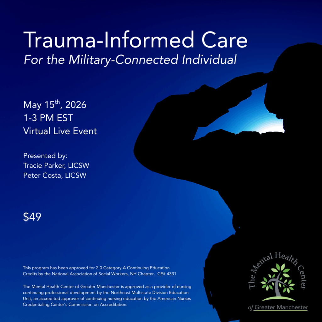 What is “trauma-informed care?”  How do the concepts of trauma-informed care apply to military-connected individuals?  This course describes trauma, the prevalence of trauma, the elements of a trauma-informed service delivery system, and trauma-informed services for military-involved individuals.  The course will also discuss moral injury as a separate, but confounding challenge in trauma-informed care.  This program is approved for 2.0 Category A Continuing Education Credits by the National Association of Social Workers, NH Chapter.  CE# 4331. This program provides 2.0 contact hours for nurses through the ANCC. Learners must have a working camera and microphone to participate in this training and be eligible for CEs.